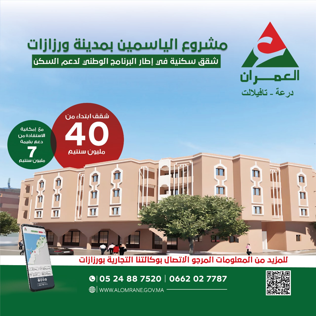 le projet AL YASSAMINE est situé au centre de quartier AL WAHDA à OUARZAZATE Ouarzazate
