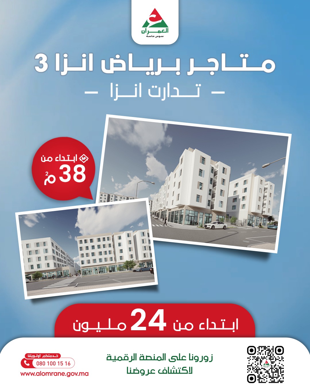 Ryad Anza III vous offre des locaux commerciaux bien situés dans une zone très animée.