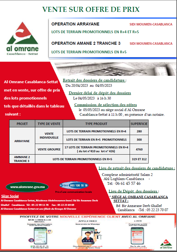 VENTE SUR OFFRE DE PRIX - OPERATION ARRAYANE + OPERATION AMANE 2 TRANCHE 3